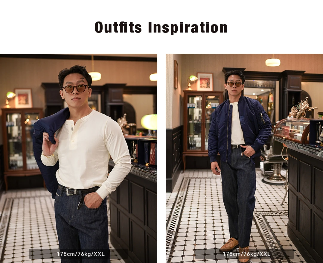 Maden Long-sleeved Henley Shirt for Men Three-button Classic Design Round Collar Beige Basic T-shirts Male Autumn Thin Tees